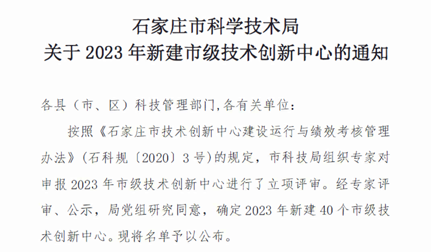 下一步,中心將嚴格按照《石家莊市技術創新中心建設運行與績效考核管理辦法》的有關規定,抓緊啟動創新中心建設各項工作。